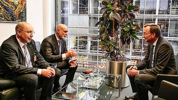 Bei einem Treffen mit dem Fraktionsvorsitzenden der CDU/CSU-Bundestagsfraktion, Jens Spahn, hat dbb-Chef Volker Geyer die Bedeutung des Berufsbeamtentums unterstrichen.