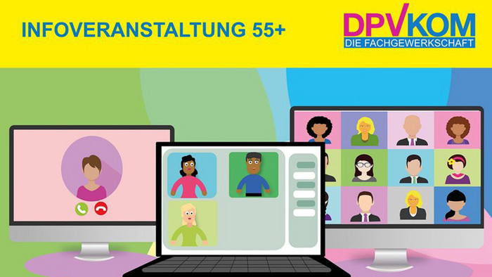 Erstmals um 17:00 Uhr beginnt am 11. März die nächste Infoveranstaltung 55+ unserer DPVKOM. Damit wollen wir Kolleginnen und Kollegen die Teilnahme ermöglichen, die zu der bisherigen Uhrzeit am Vormittag schlecht teilnehmen konnten.